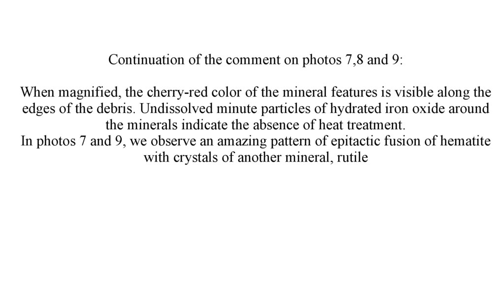 Continuation of the comment on photos 7,8 and 9:s visible along the edges of the debris. Undissolved minute particles of hydrated iron o