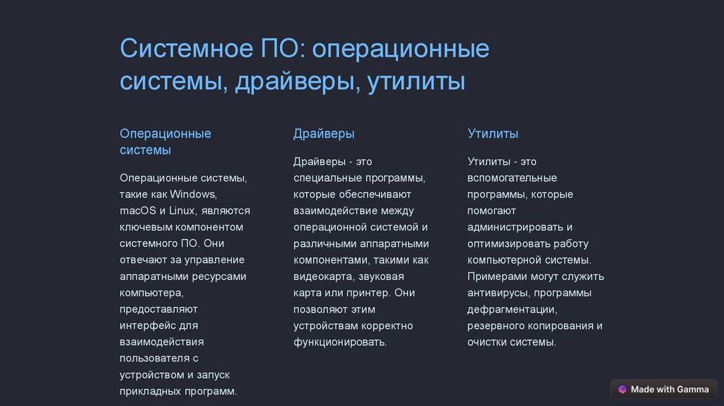 Системное ПО: операционныесистемы, драйверы, утилиты