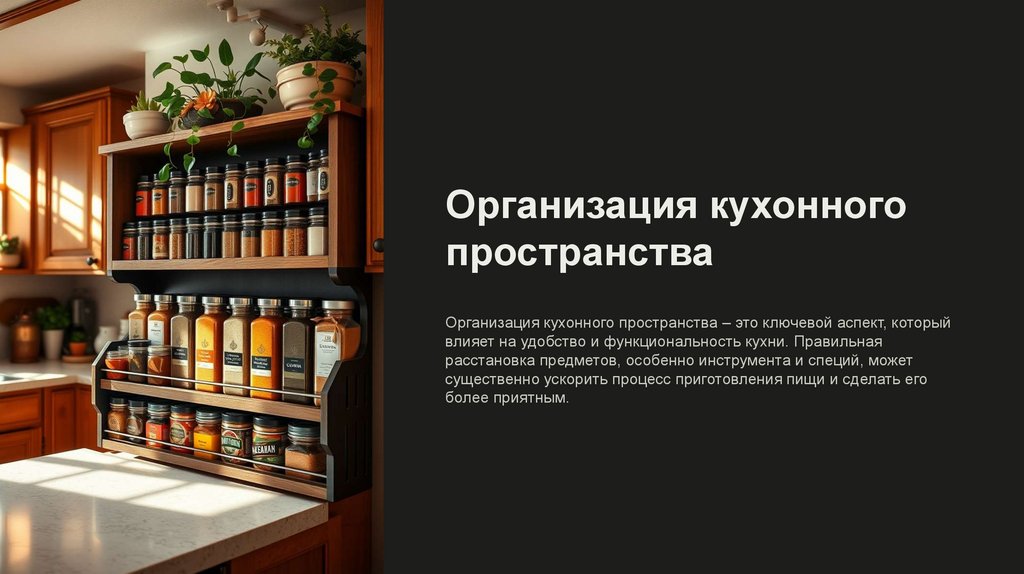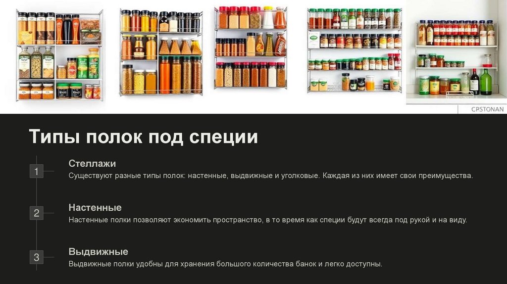 При размещении специй важно учитывать, чтобы они были доступны во время готовки. Полки должны находиться на
