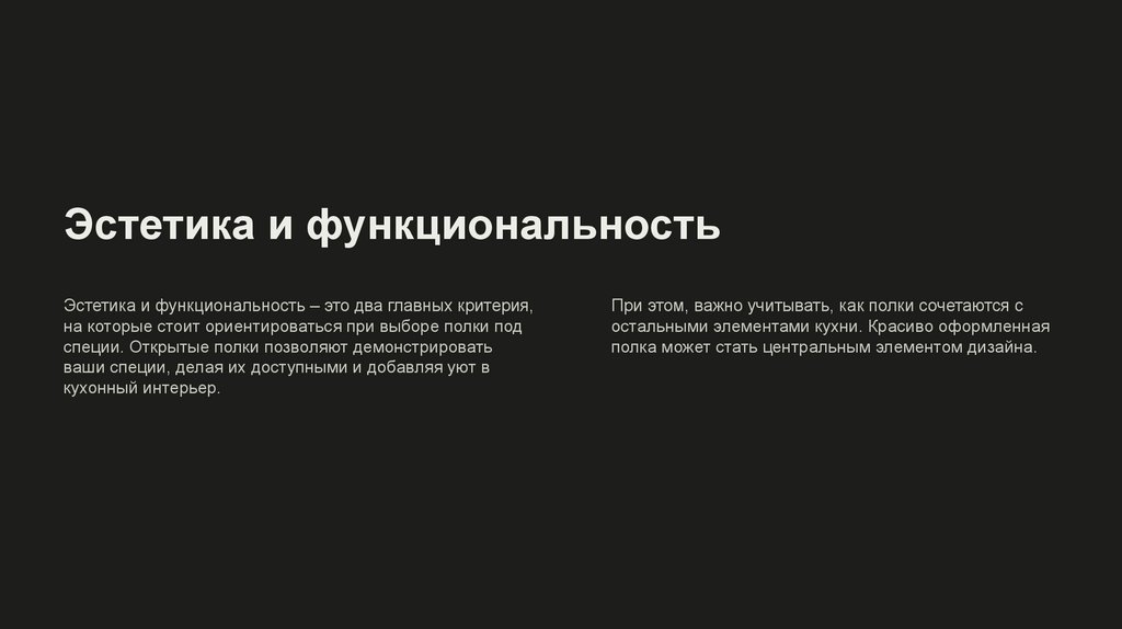 Эстетика и функциональностьЭстетика и функциональность – это два главных критерия,