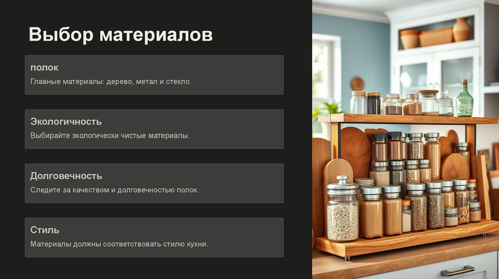 Это не только добавит стиля, но и поможет видеть все специи без труда. Декоративные элементы, такие как