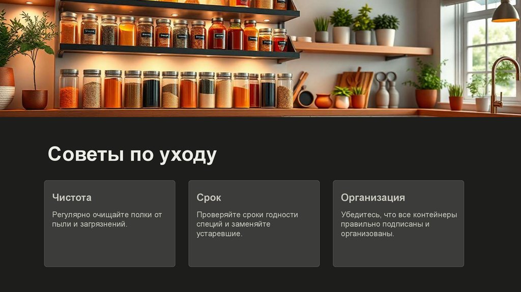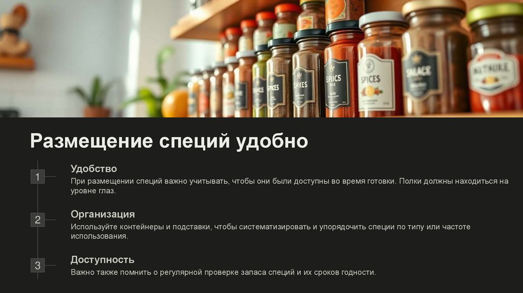 Важно также помнить о регулярной проверке запаса специй и их сроков годности.