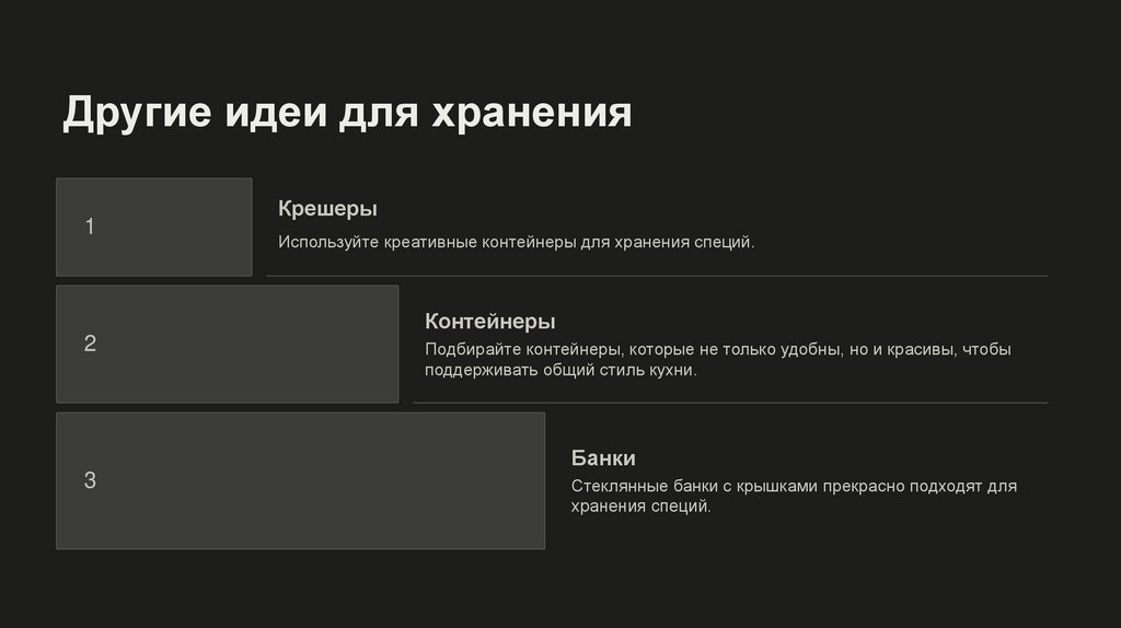 Используйте контейнеры и подставки, чтобы систематизировать и упорядочить специи по типу или частоте