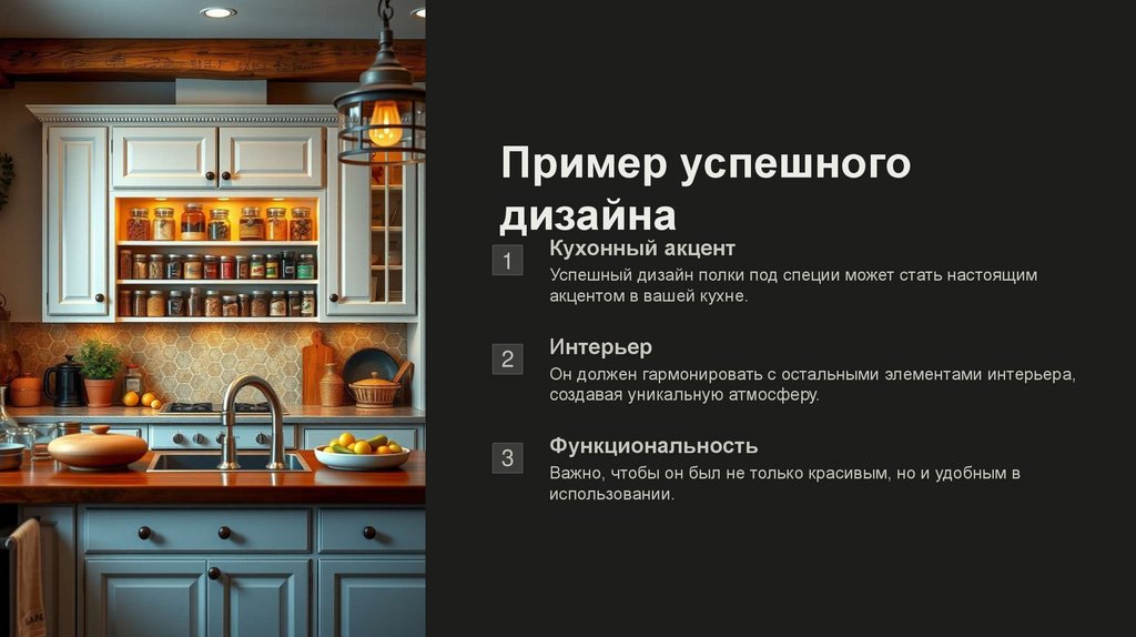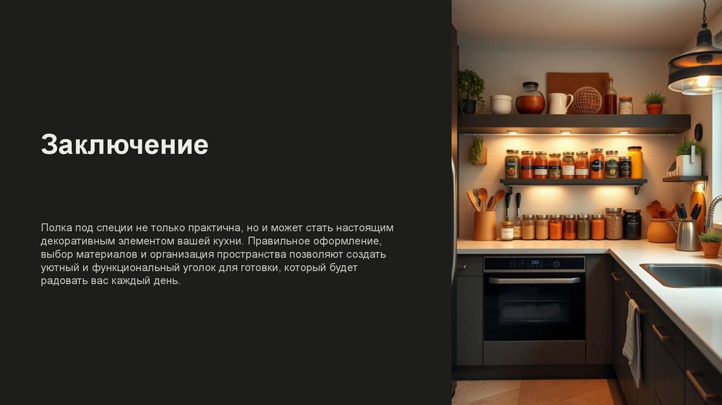 ЗаключениеПолка под специи не только практична, но и может стать настоящим