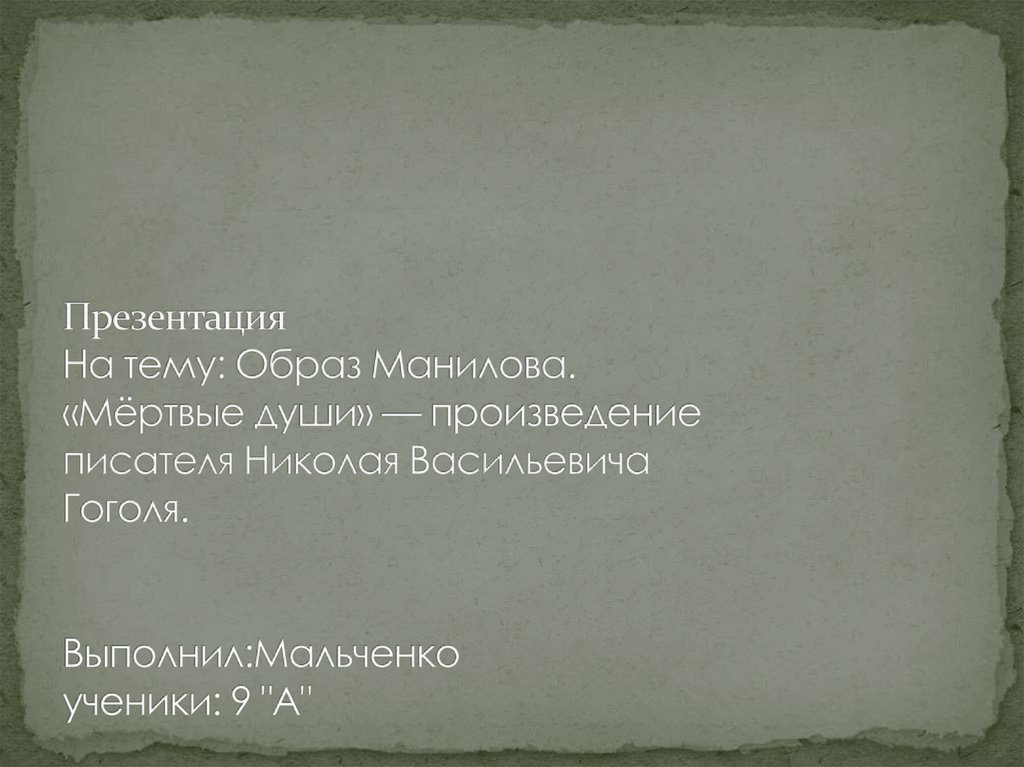 Образ Манилова. "Мертвые души" - произведение писателя Николая Васильевича Гоголя