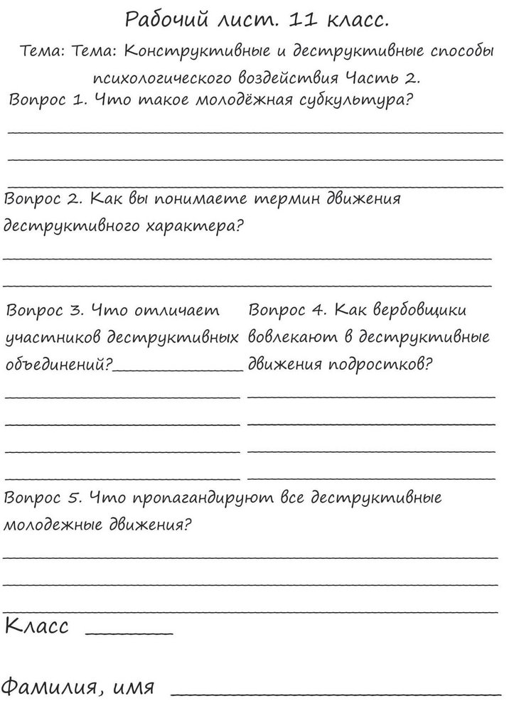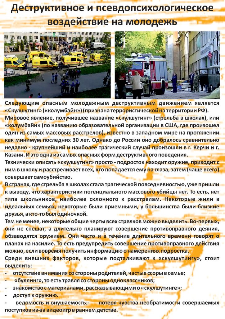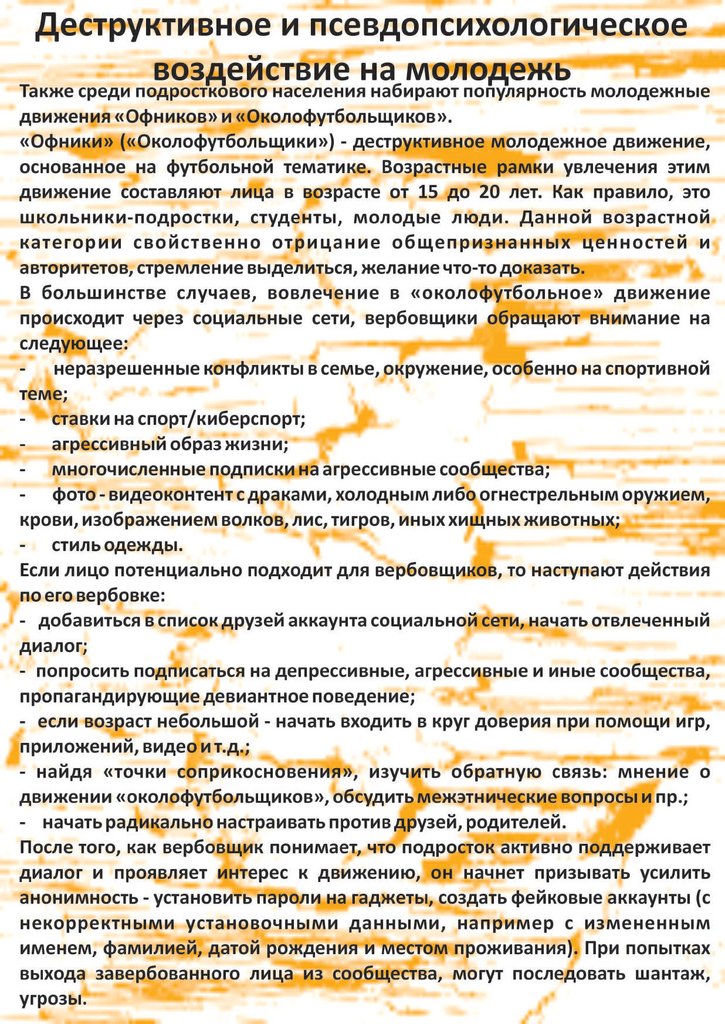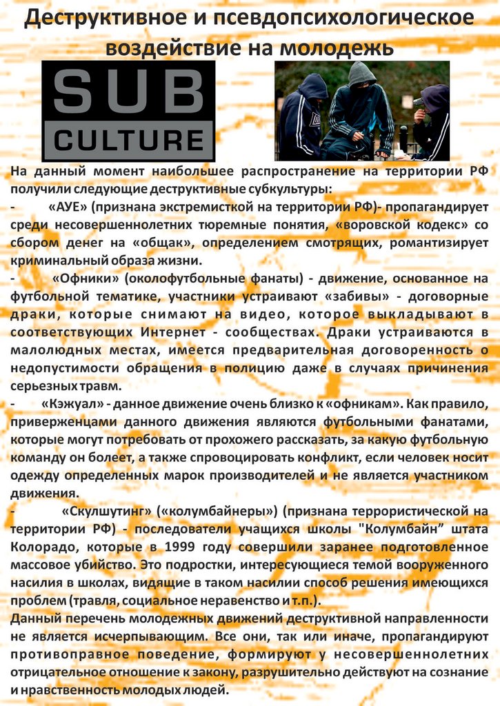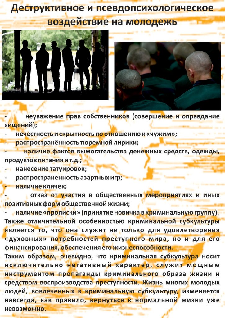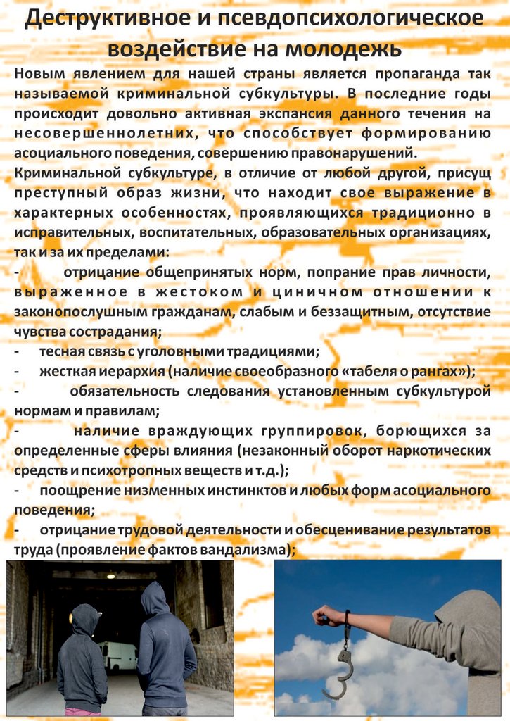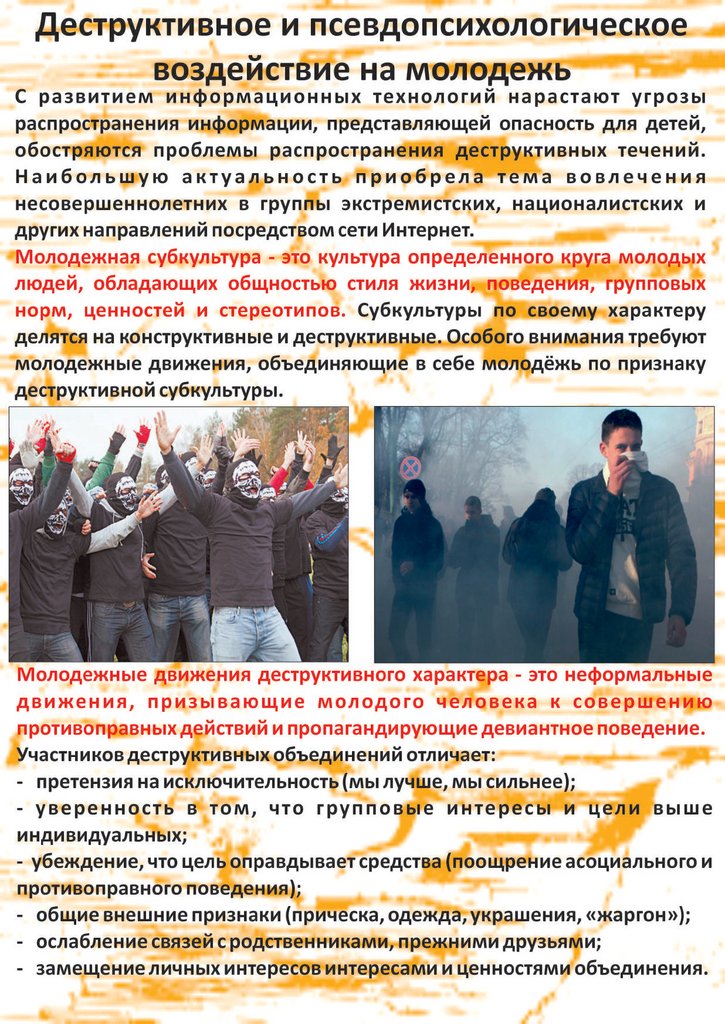 Деструктивное и псевдопсихологическое воздействие на молодежь