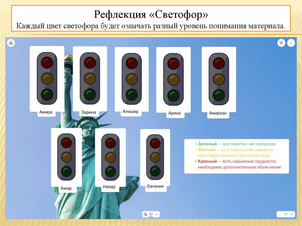 Рефлекция «Светофор»Каждый цвет светофора будет означать разный уровень понимания материала.
