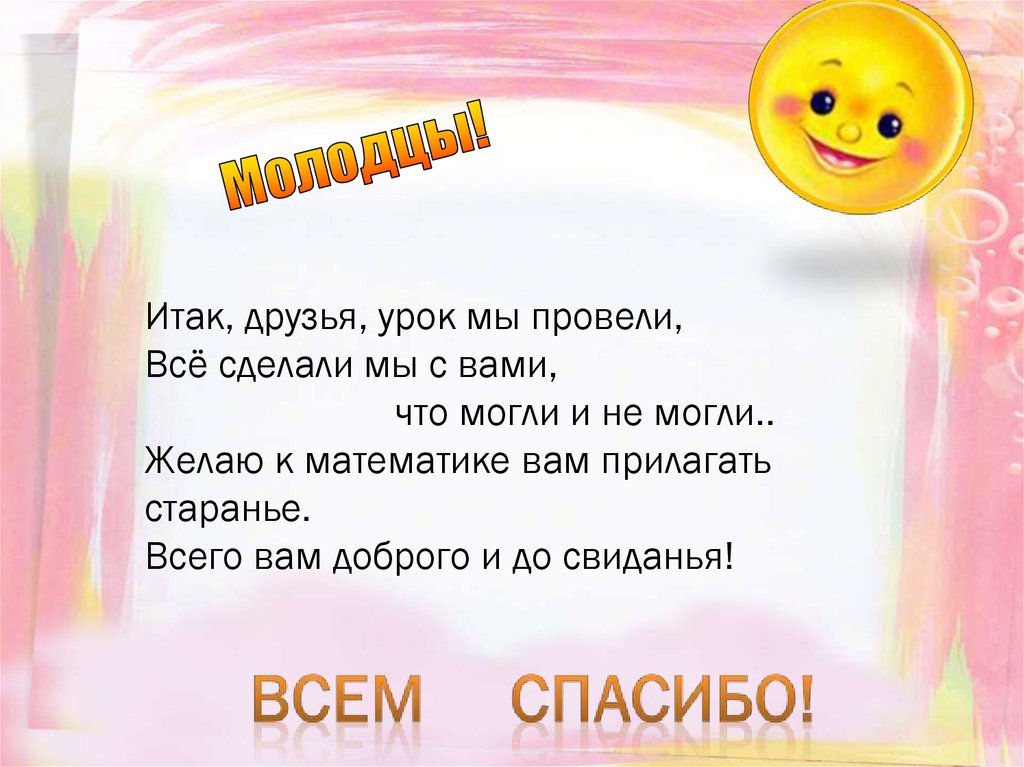 Итак, друзья, урок мы провели,Всё сделали мы с вами,