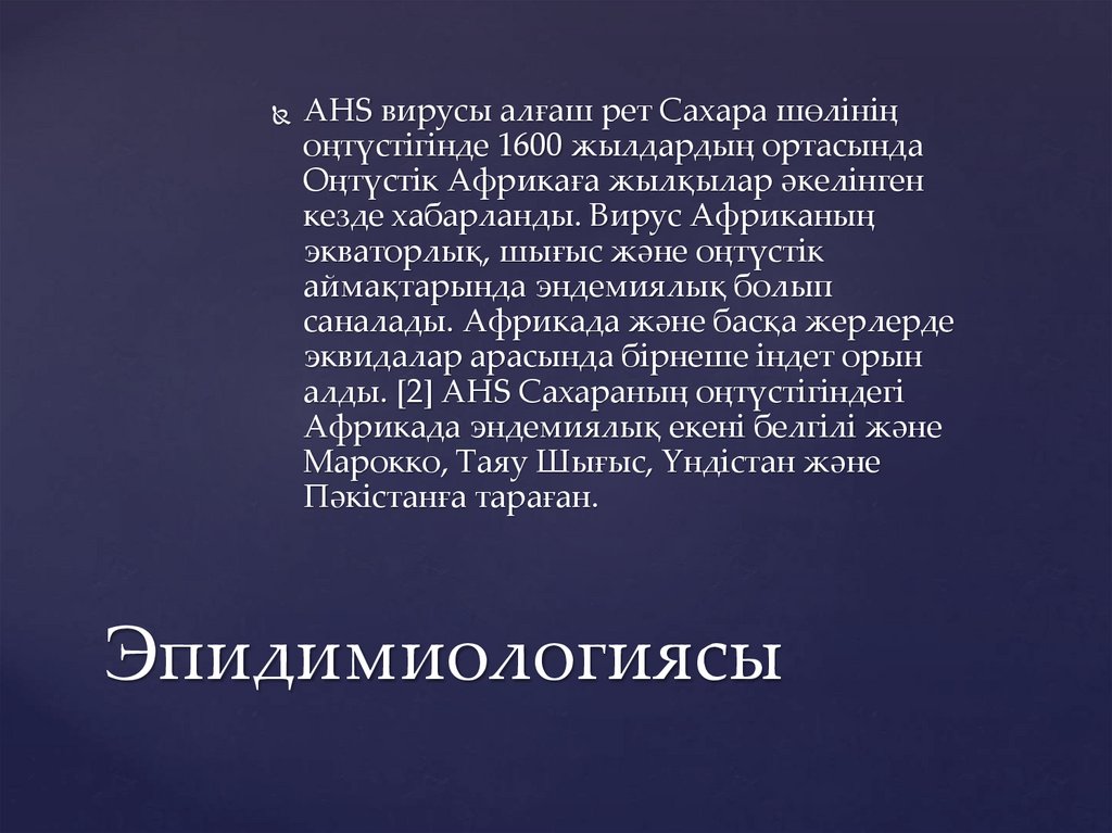 AHS вирусы алғаш рет Сахара шөлініңоңтүстігінде 1600 жылдардың ортасында