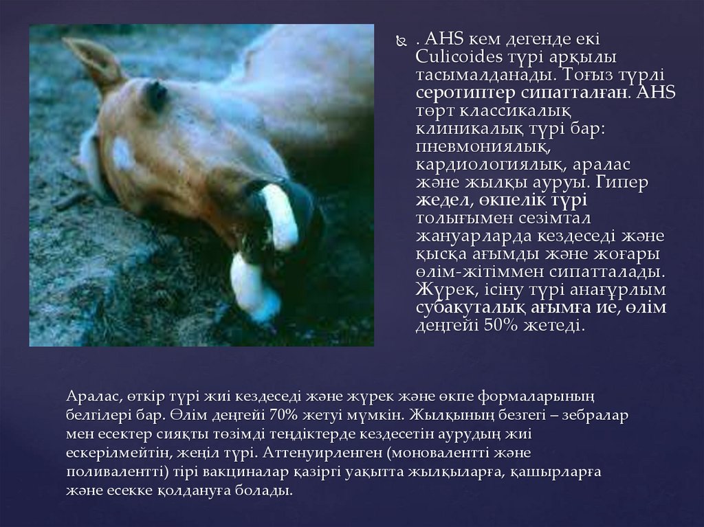 белгілері бар. Өлім деңгейі 70% жетуі мүмкін. Жылқының безгегі – зебралар