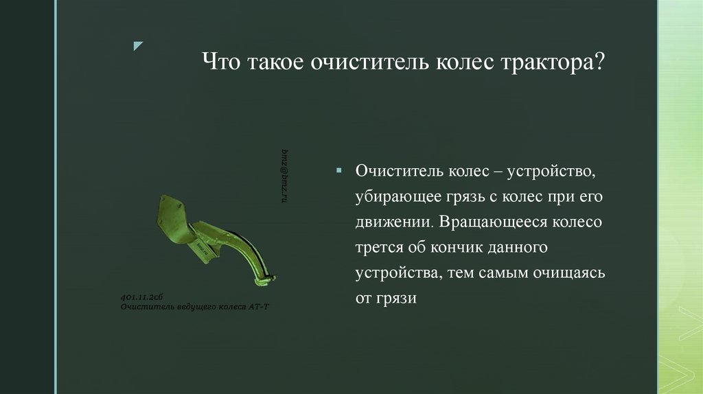 колесо и второй отогнутый конец 7 для очистки ведущего