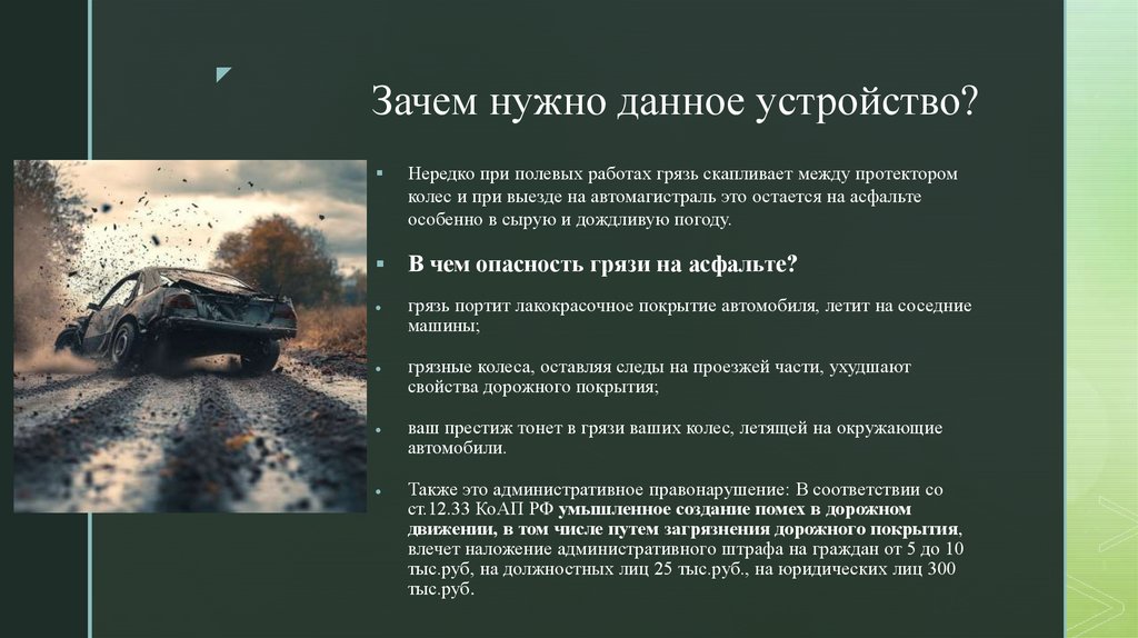 грязные колеса, оставляя следы на проезжей части, ухудшают
