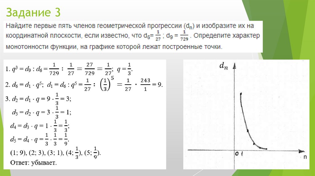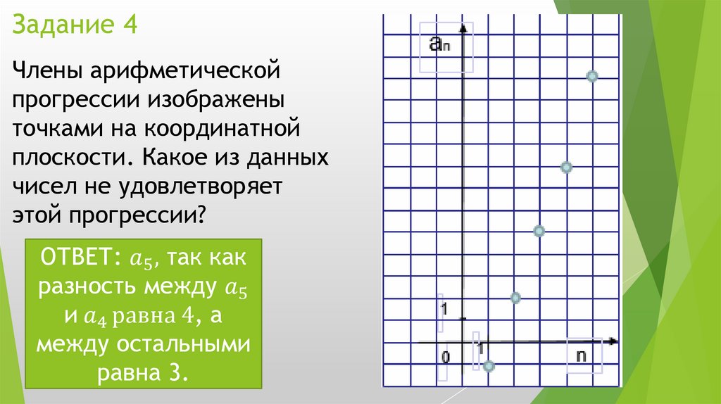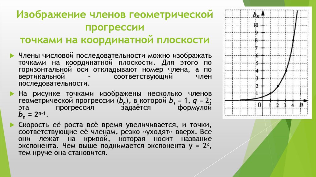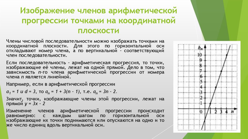 Изображение членов арифметической и геометрической прогрессий точками на координатной плоскости