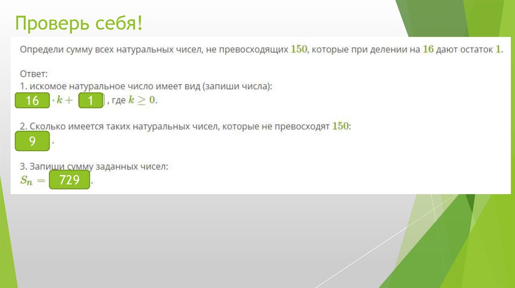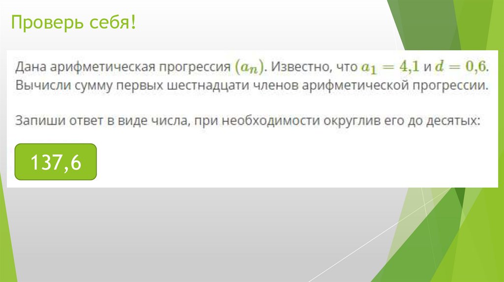 а1 = 1 и d = 3, то аn = 1 + 3(n – 1), т.е. аn = 3n – 2.