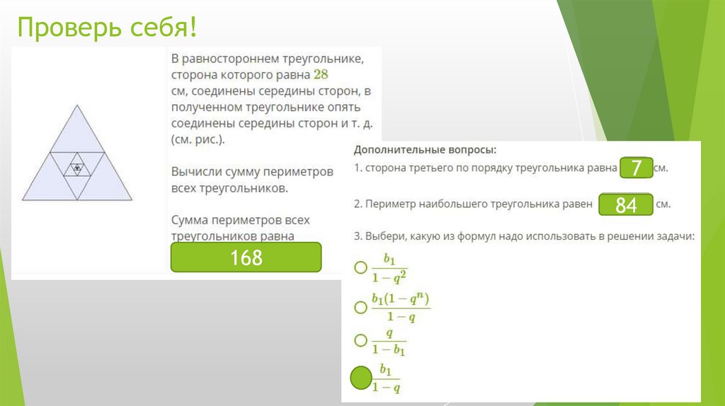 геометрической прогрессии (bn), в которой b1 = 1, q = 2;
