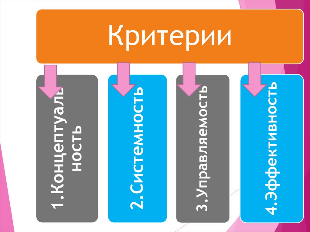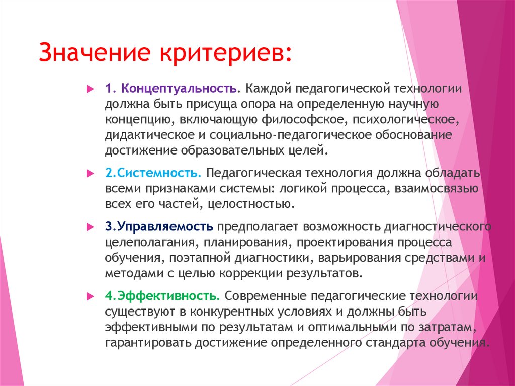 Значение критериев:1. Концептуальность. Каждой педагогической технологии