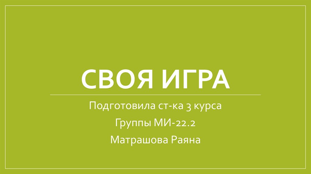 СВОЯ ИГРАПодготовила ст-ка 3 курса