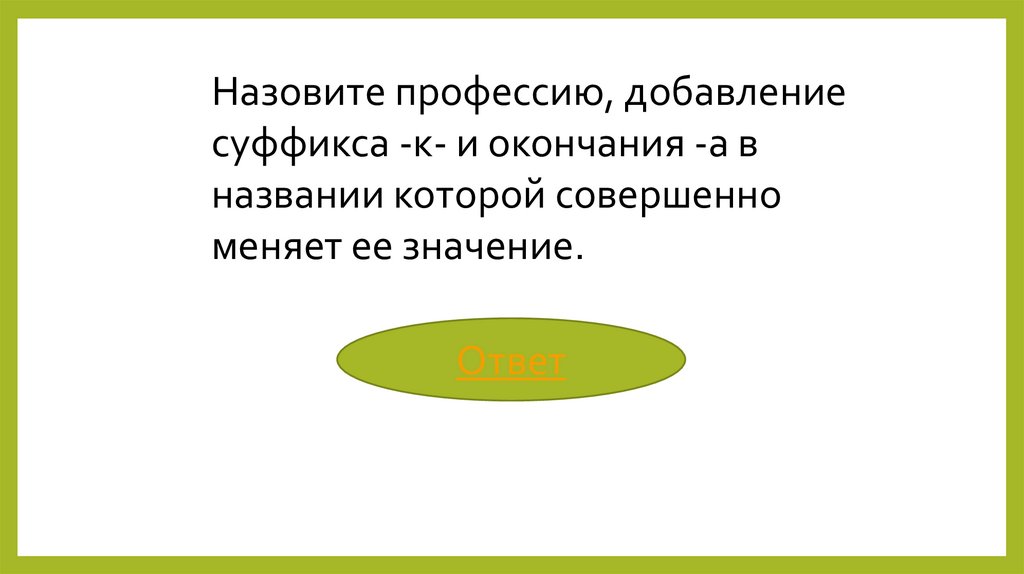 Назовите профессию, добавлениесуффикса -к- и окончания -а в