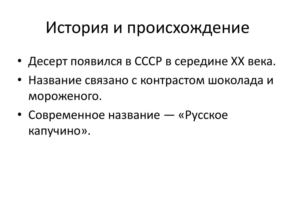 История и происхождение• Десерт появился в СССР в середине XX века.