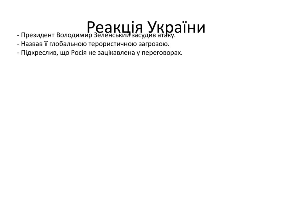 Реакція України- Президент Володимир Зеленський засудив атаку.