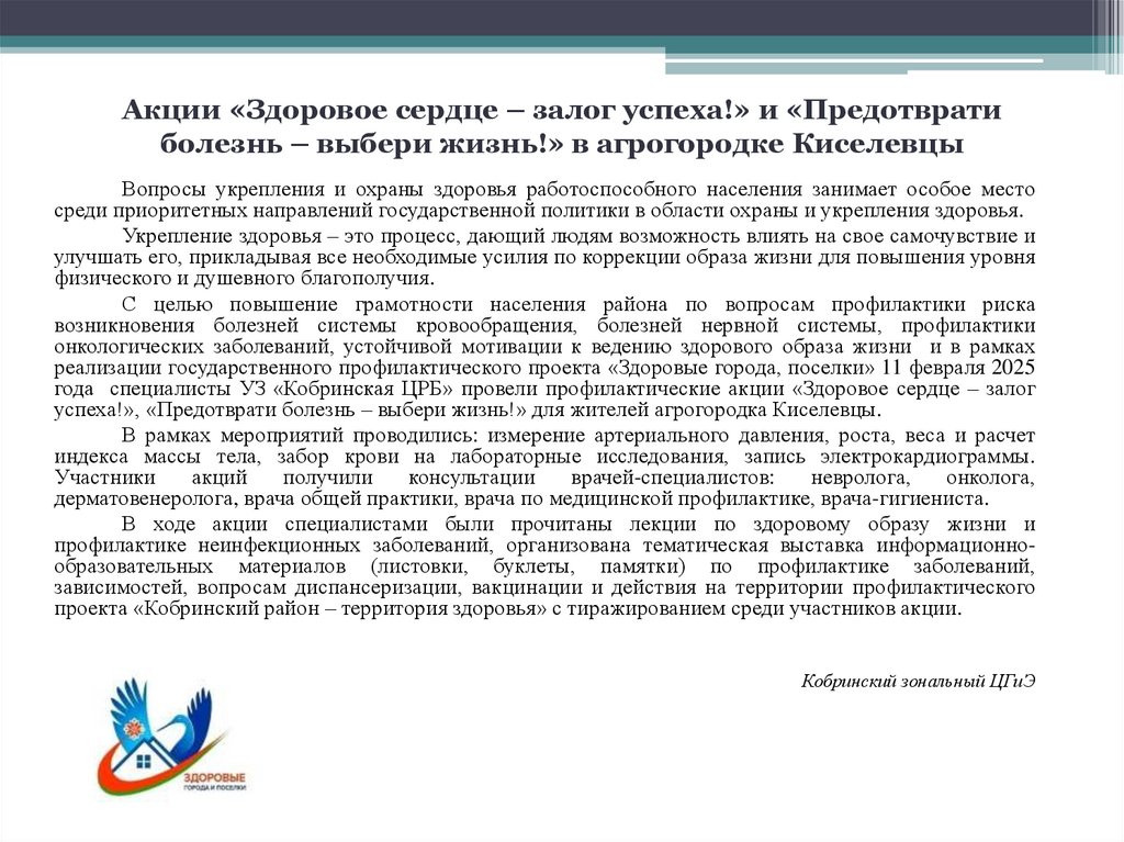 года специалисты УЗ «Кобринская ЦРБ» провели профилактические акции «Здоровое сердце – залог