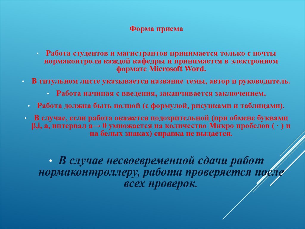Форма приемаРабота студентов и магистрантов принимается только с почты