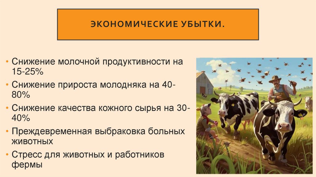 ЭКОНОМИЧЕСКИЕ УБЫТКИ.• Снижение молочной продуктивности на