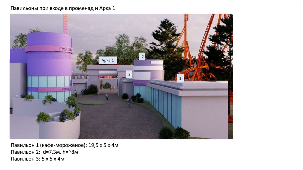 Павильон 1 (кафе-мороженое): 19,5 х 5 х 4м