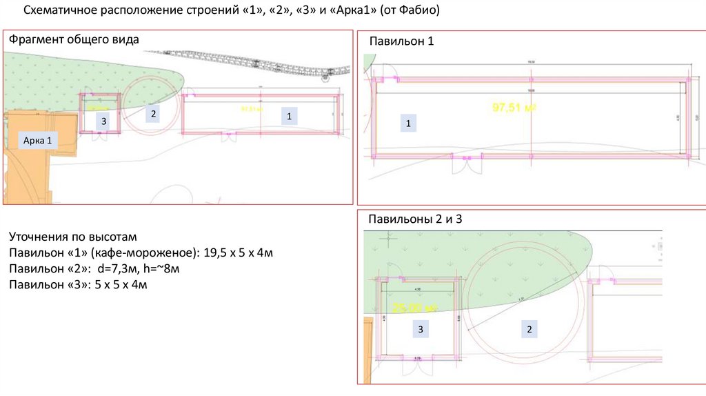 Схематичное расположение строений «1», «2», «3» и «Арка1» (от Фабио)Фрагмент общего вида