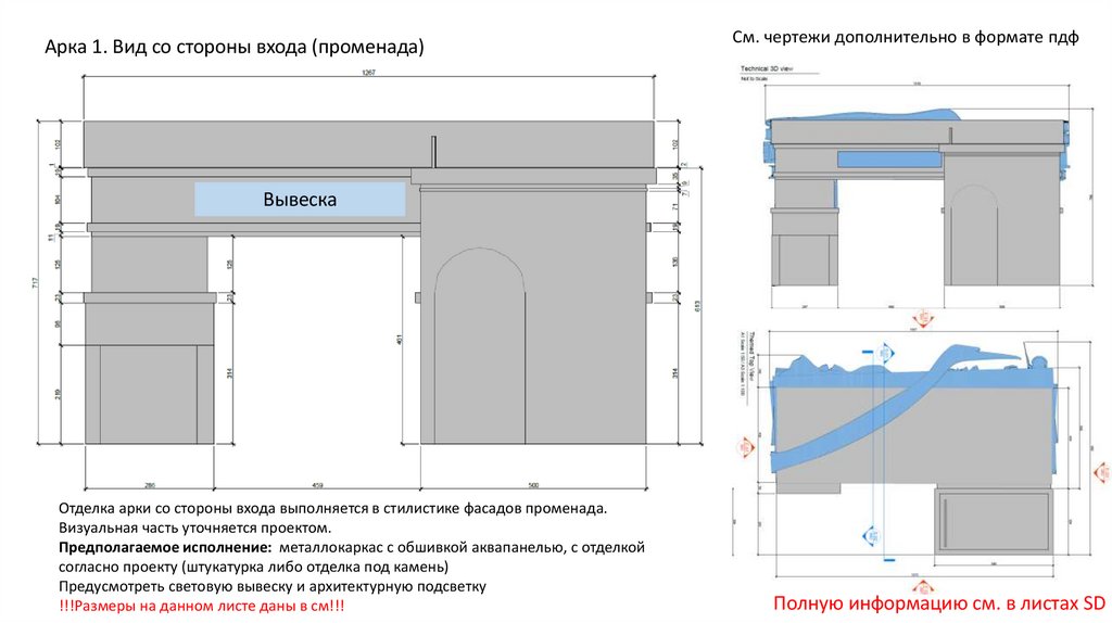 Арка 1. Вид со стороны входа (променада)См. чертежи дополнительно в формате пдф