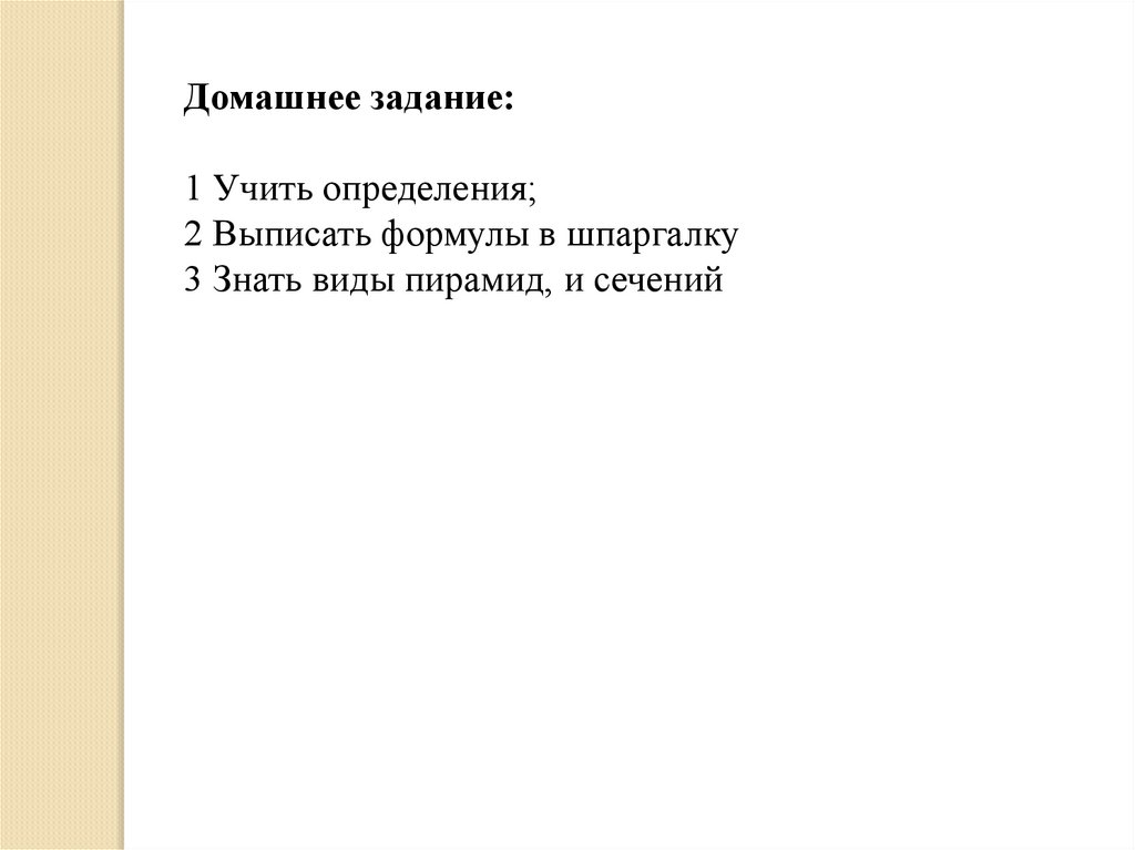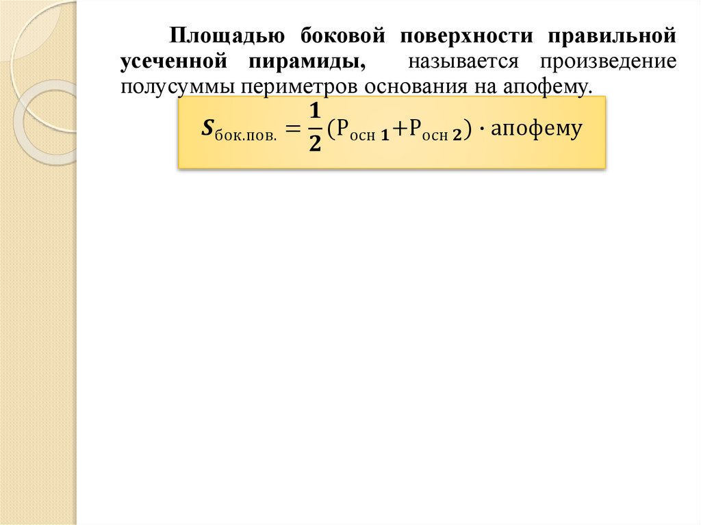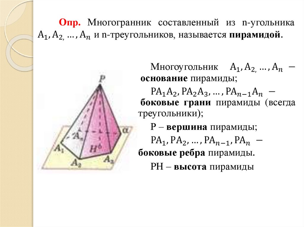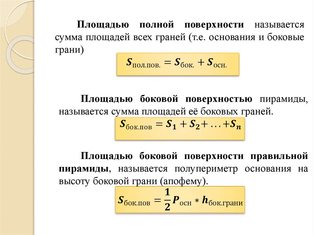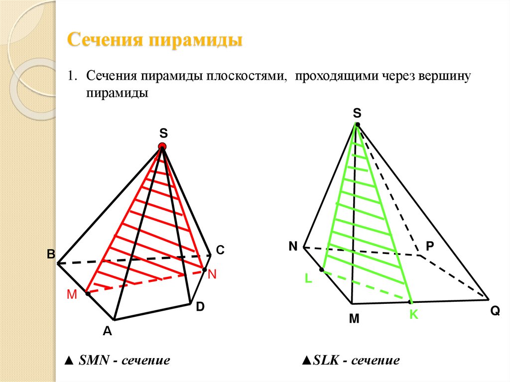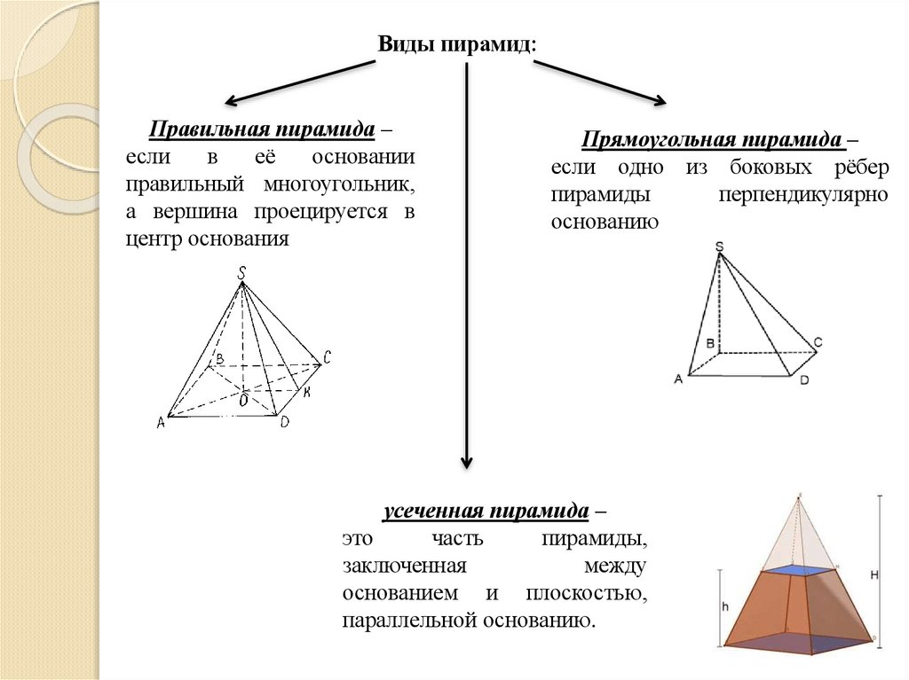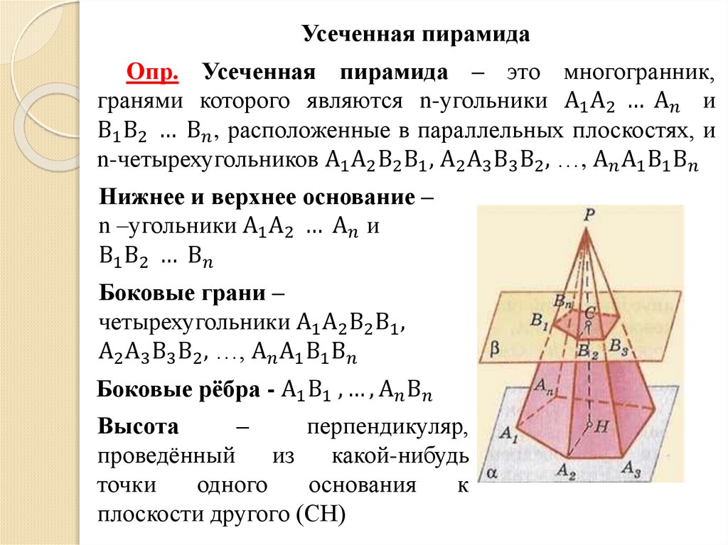 Пирамида и пирамида усеченная. Ее составляющие и виды. Полная и боковая поверхности пирамиды усеченной. Решение задач