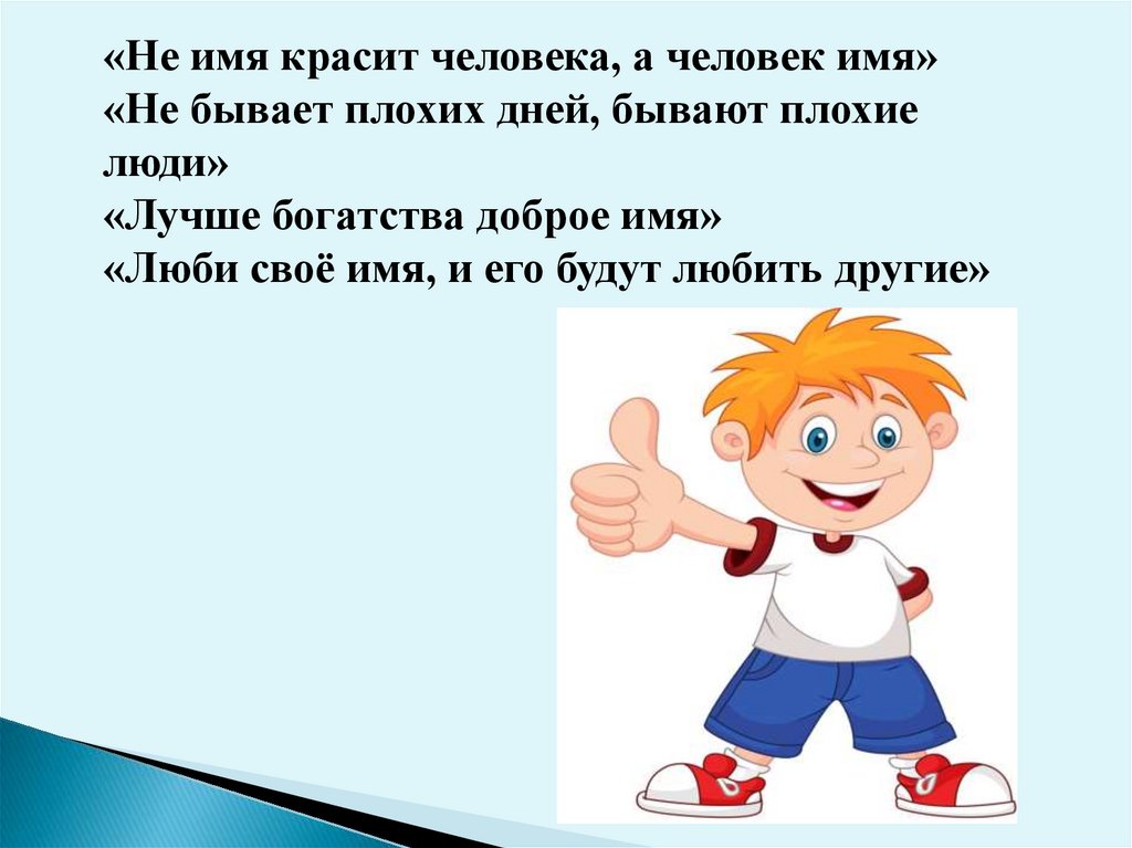 «Не имя красит человека, а человек имя»«Не бывает плохих дней, бывают плохие