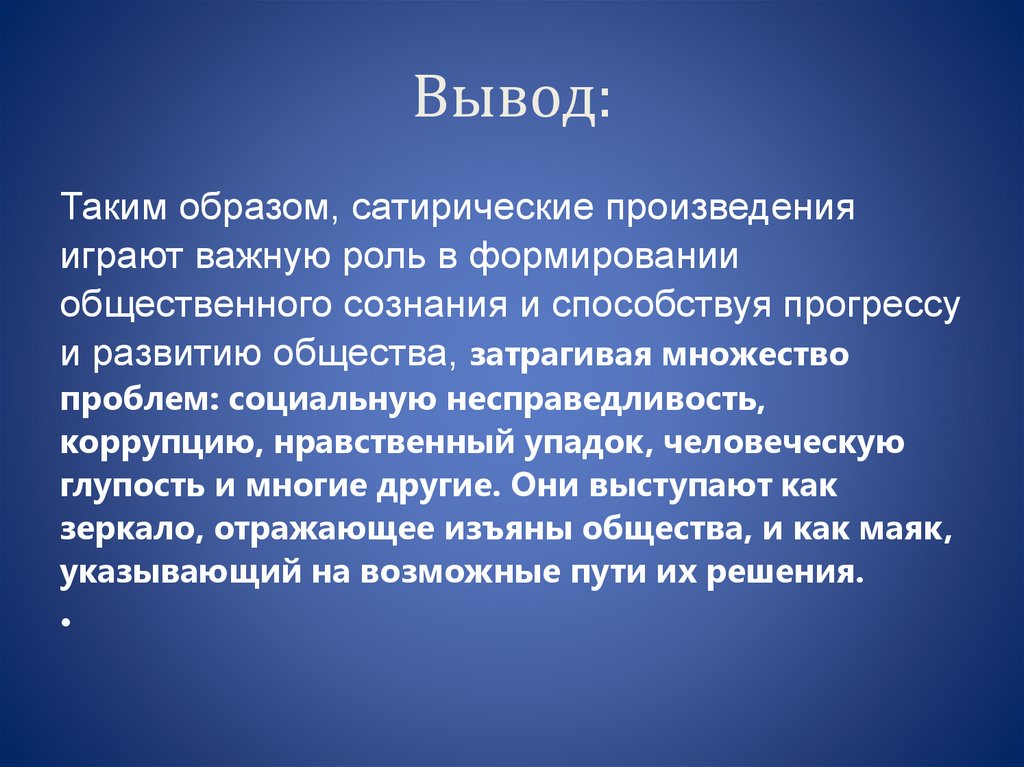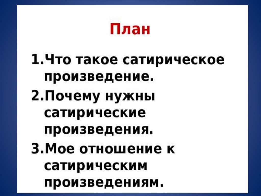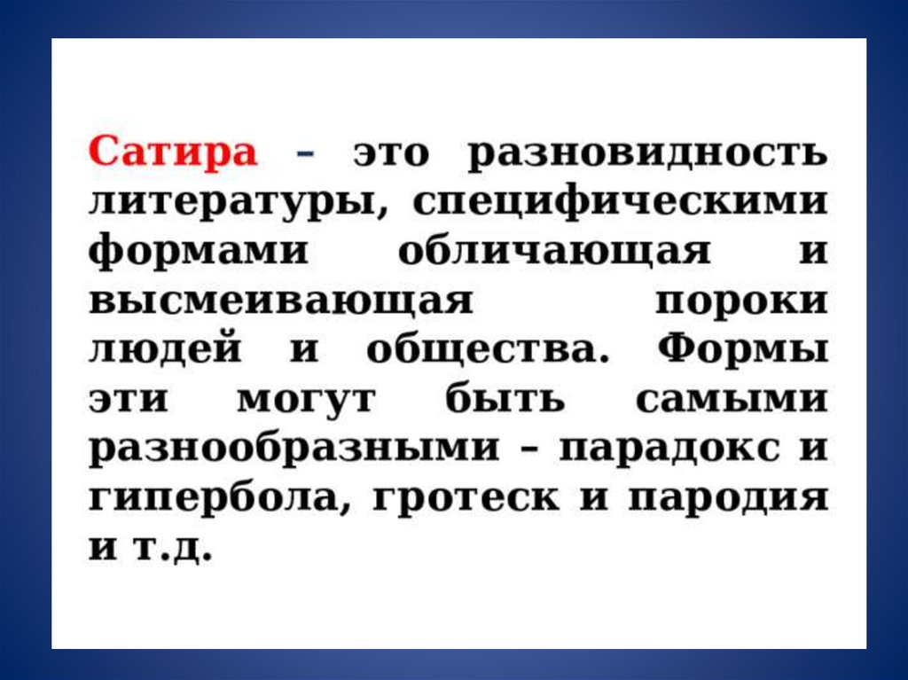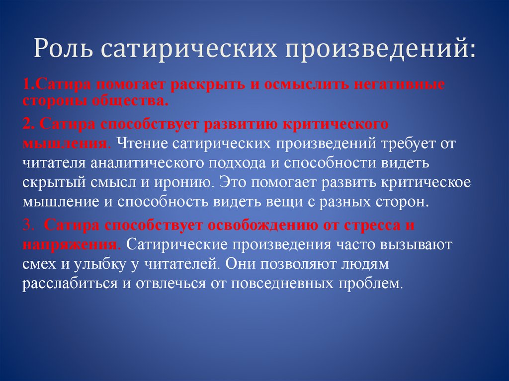 Роль сатирических произведений:1.Сатира помогает раскрыть и осмыслить негативные