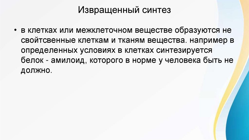 Извращенный синтез• в клетках или межклеточном веществе образуются не