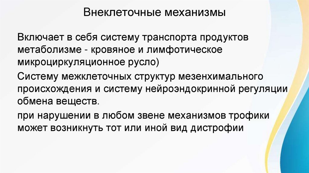 Внеклеточные механизмыВключает в себя систему транспорта продуктов