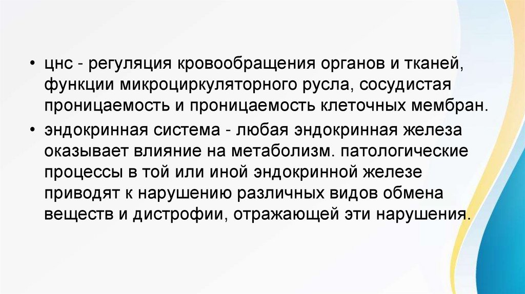 • цнс - регуляция кровообращения органов и тканей,функции микроциркуляторного русла, сосудистая
