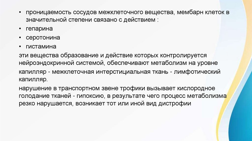 • проницаемость сосудов межклеточного вещества, мембарн клеток взначительной степени связано с действием :