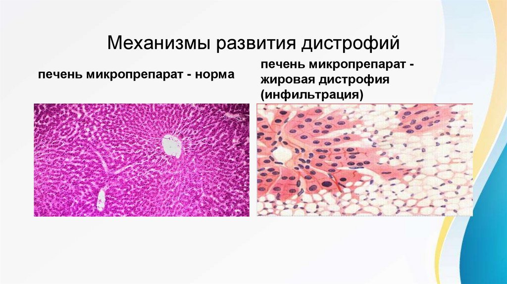 Механизмы развития дистрофийпечень микропрепарат - норма