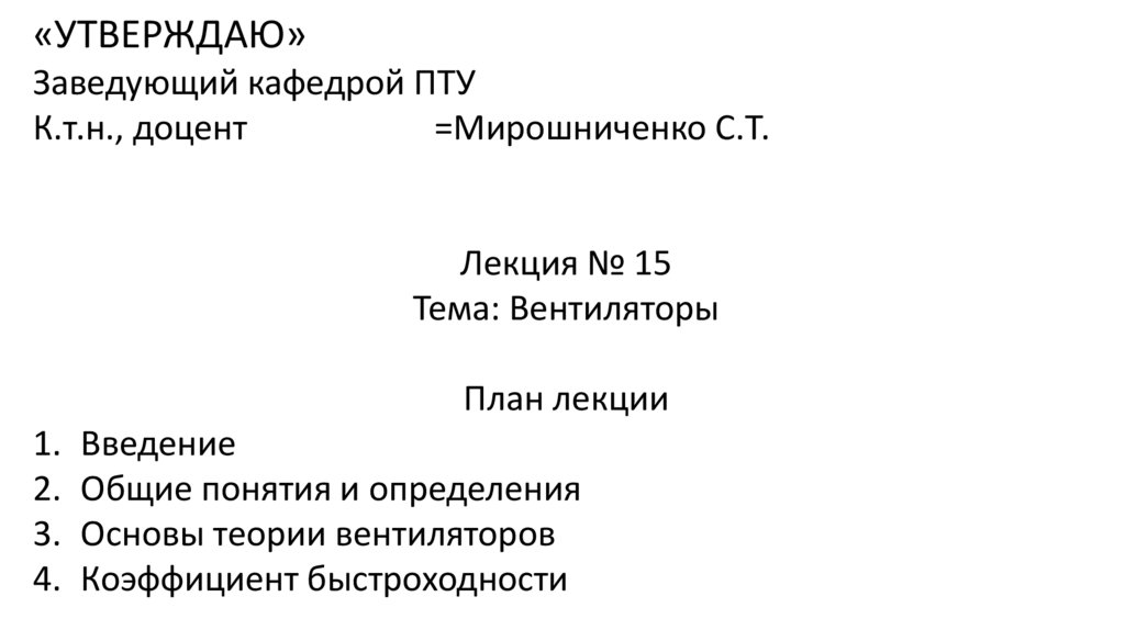 «УТВЕРЖДАЮ»Заведующий кафедрой ПТУ