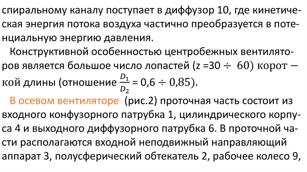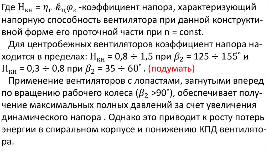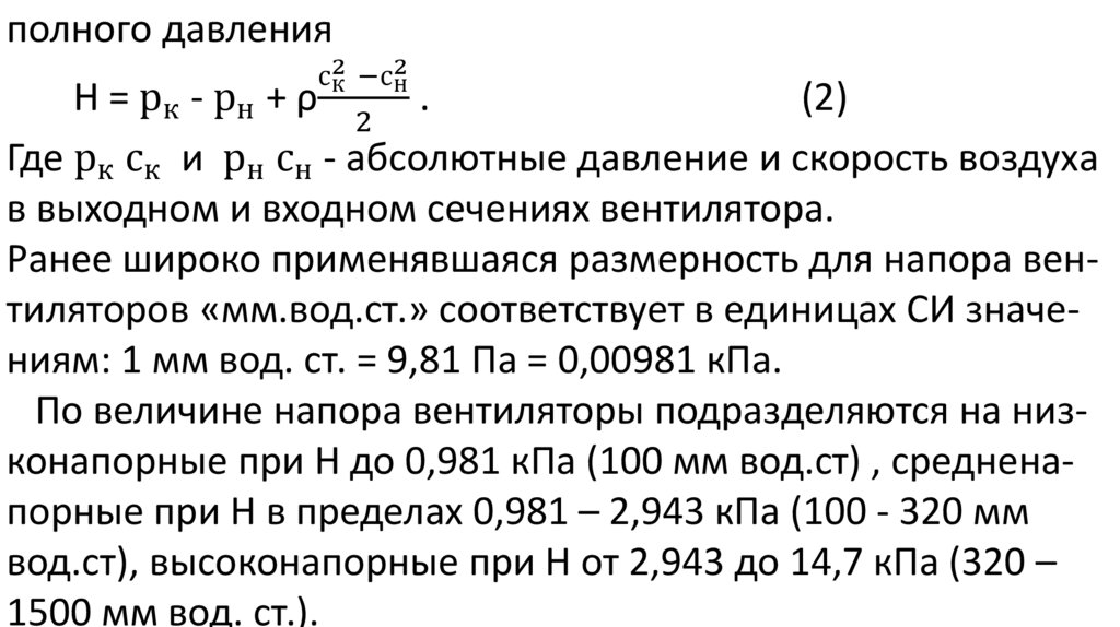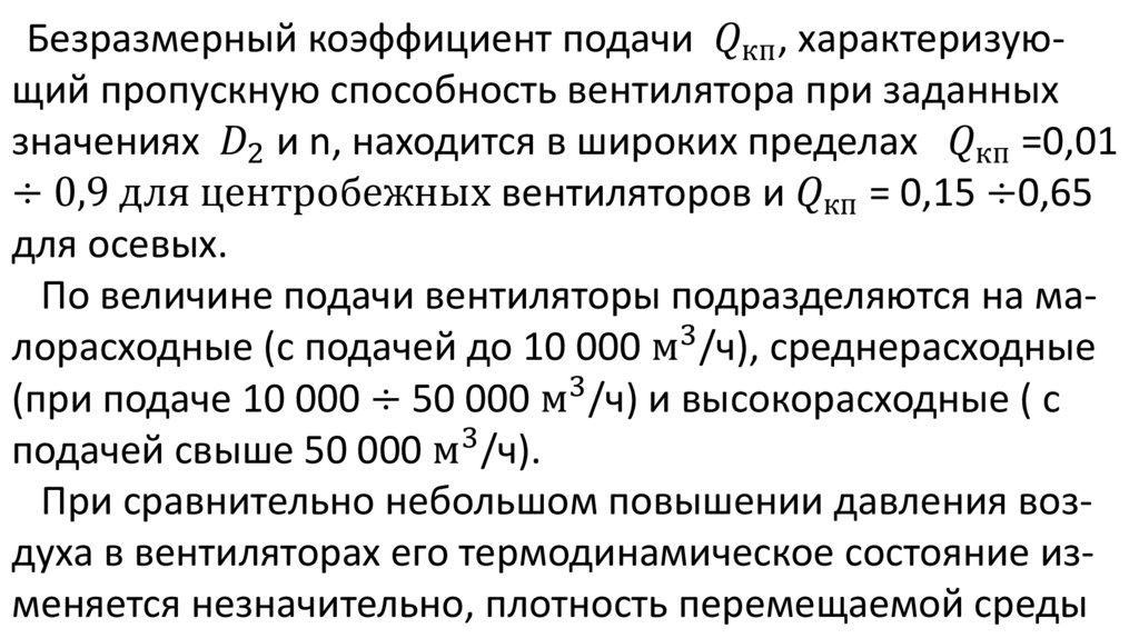 избыточном давлении, обычно не выше 15КПа. Вентиляторы