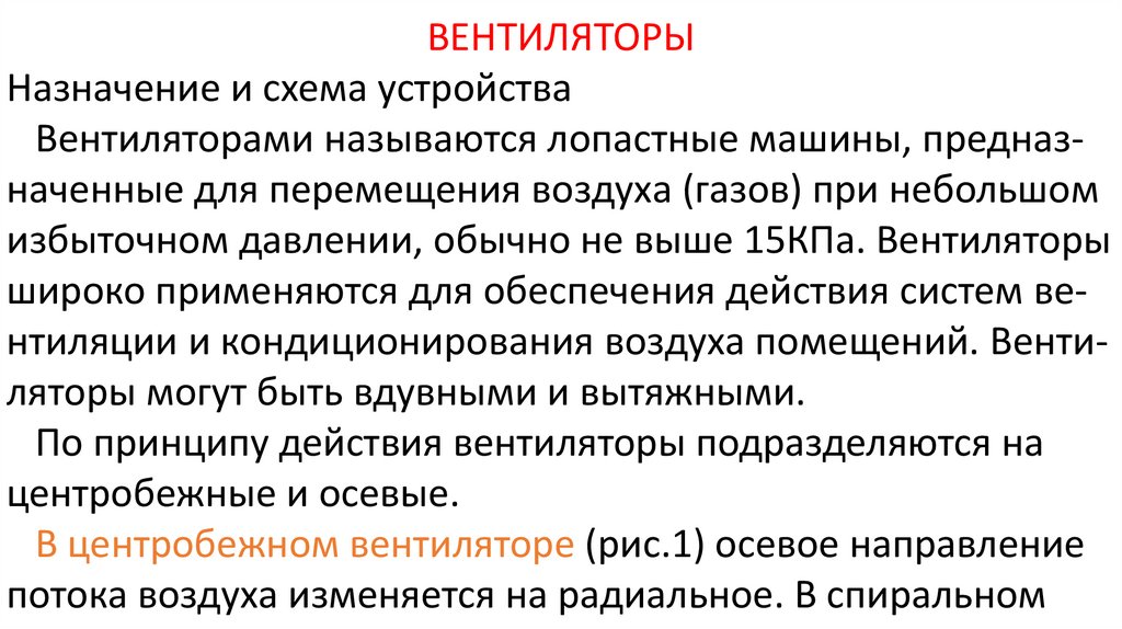 Вентиляторами называются лопастные машины, предназначенные для перемещения воздуха (газов) при небольшом