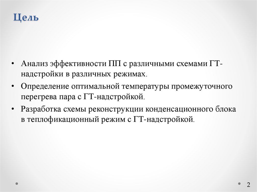 Цель• Анализ эффективности ПП с различными схемами ГТнадстройки в различных режимах.