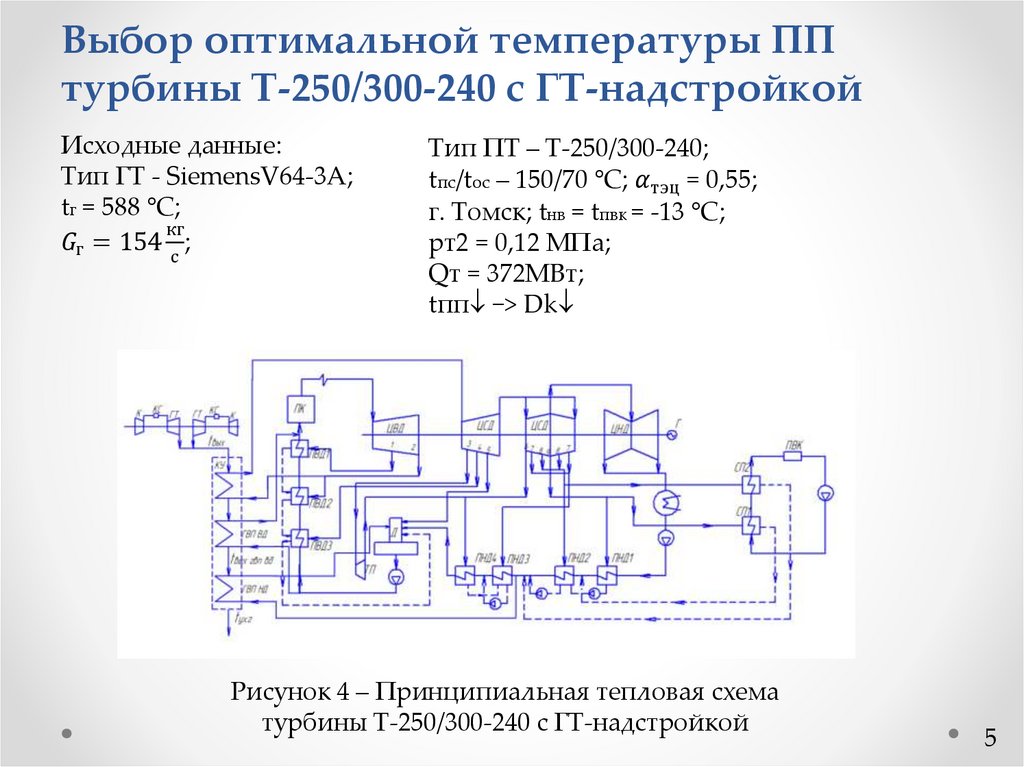 Выбор оптимальной температуры ППтурбины Т-250/300-240 с ГТ-надстройкой