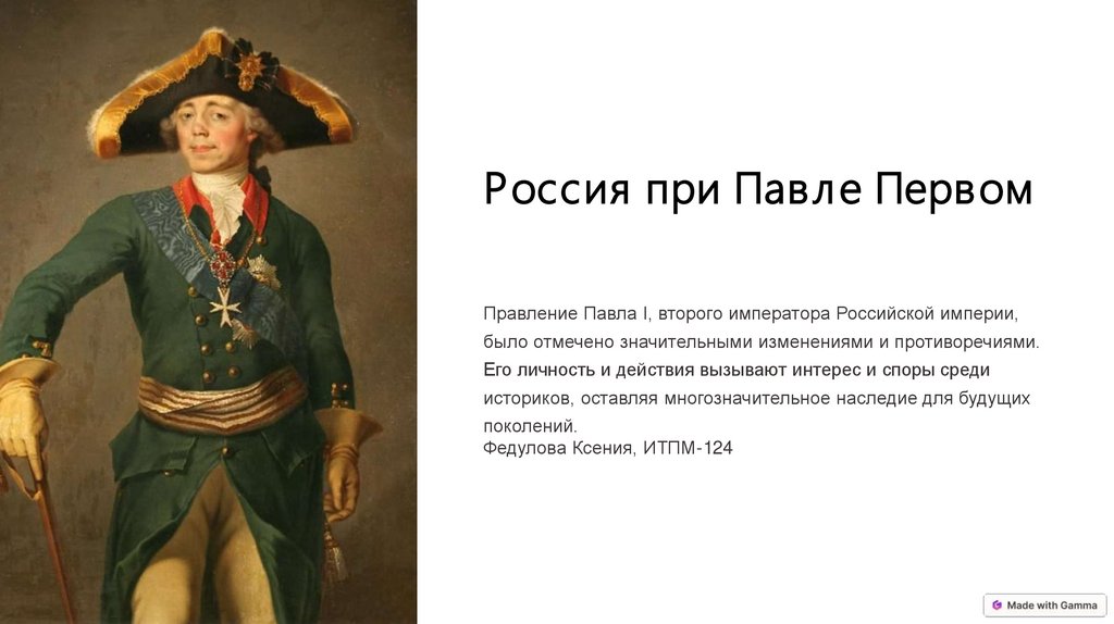 Россия при Павле ПервомПравление Павла I, второго императора Российской империи,