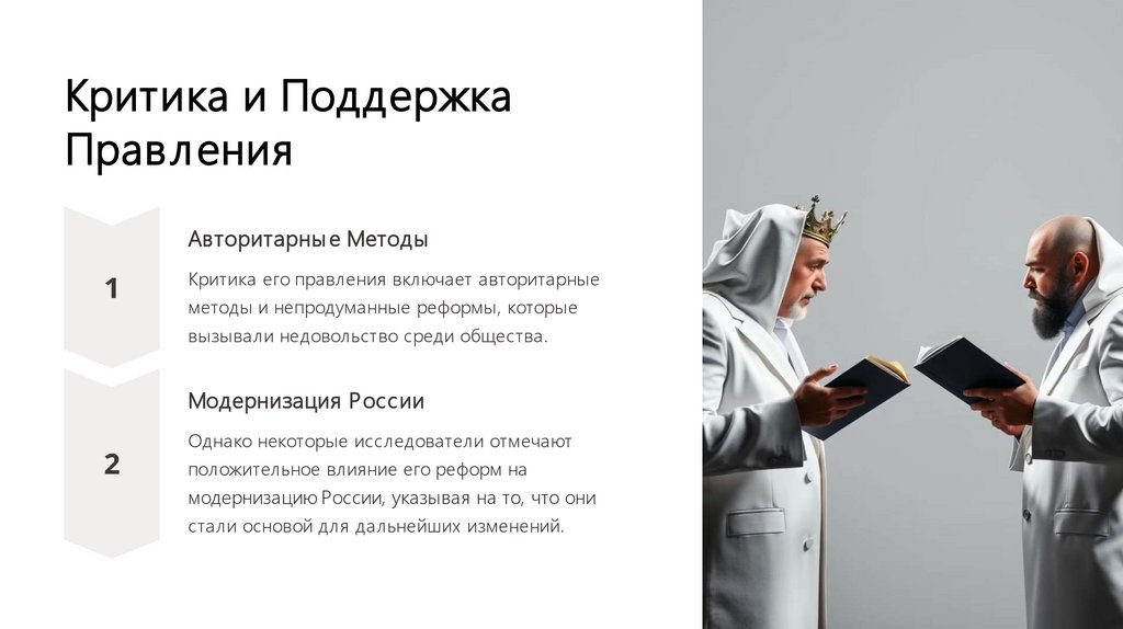 инакомыслие и жестко управлял страной. Другие видят в нем реформатора, стремившегося модернизировать
