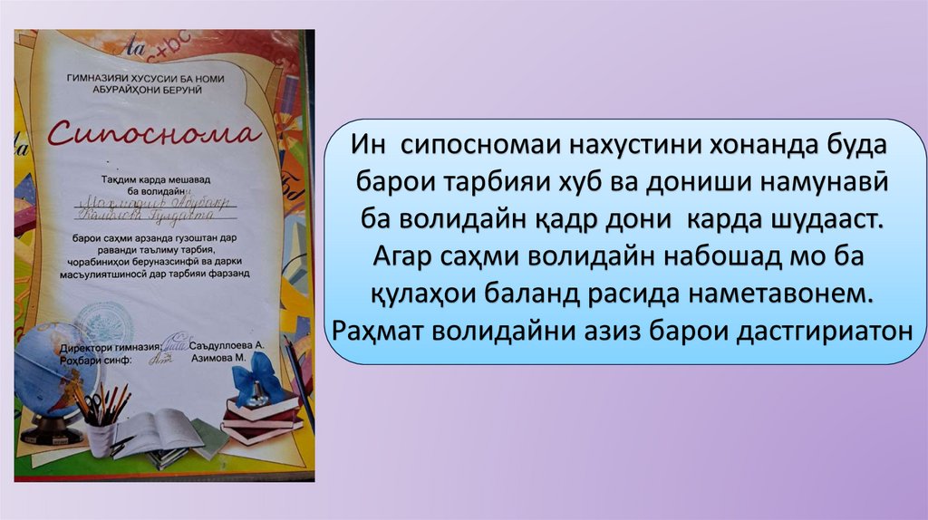 Раҳмат волидайни азиз барои дастгириатон