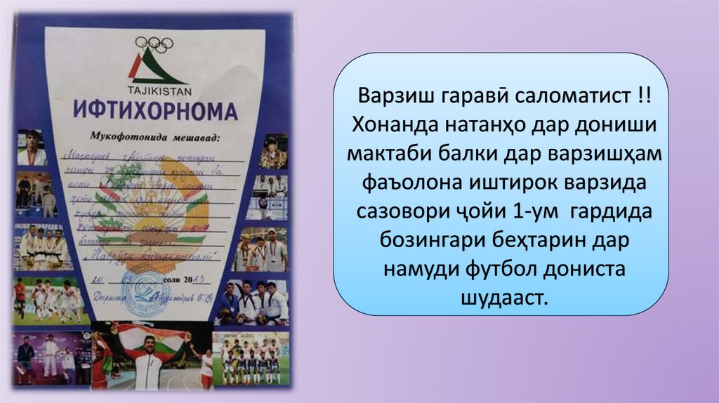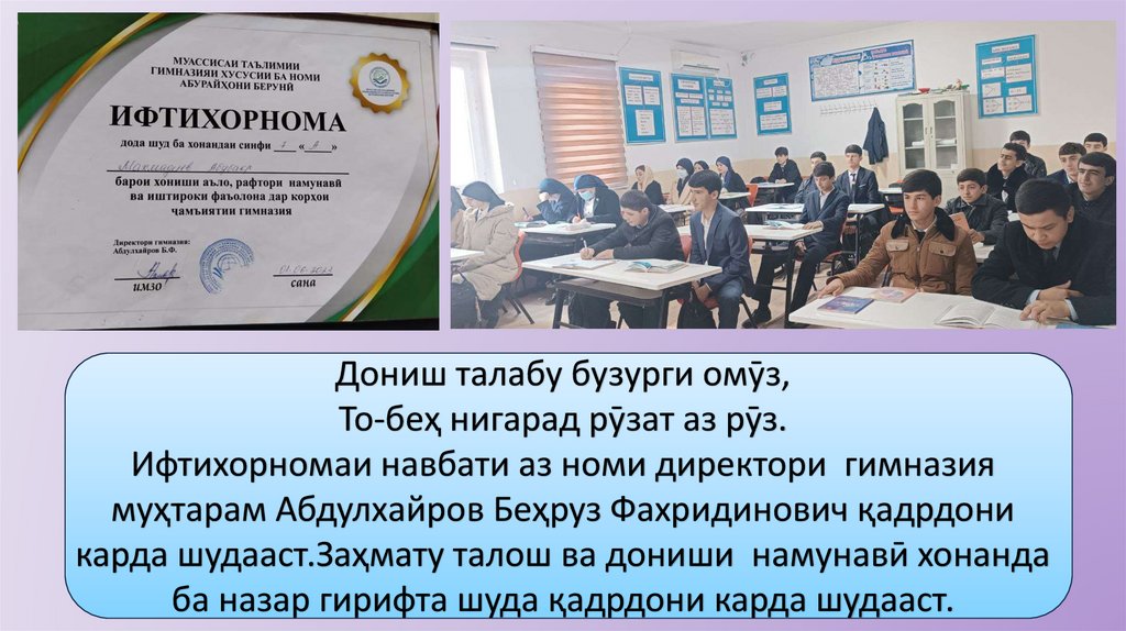 Ифтихорномаи навбати аз номи директори гимназия