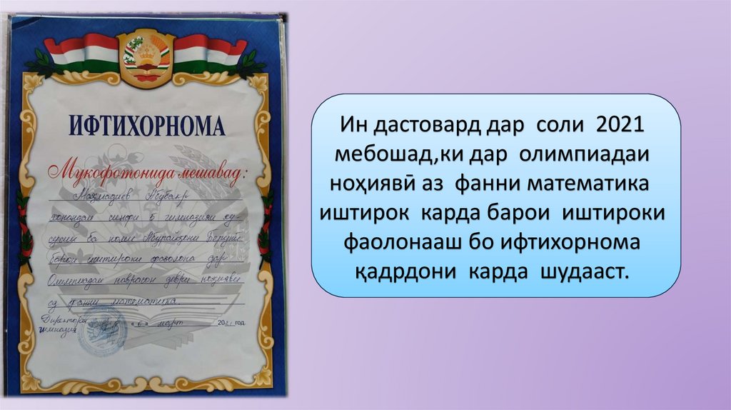 иштирок карда бо ифтихорнома ва диплом қадрдони