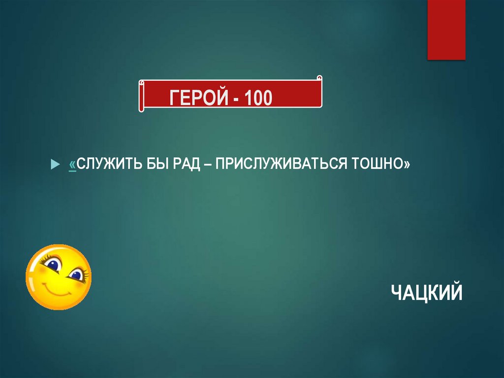 ГЕРОЙ - 100«СЛУЖИТЬ БЫ РАД – ПРИСЛУЖИВАТЬСЯ ТОШНО»
