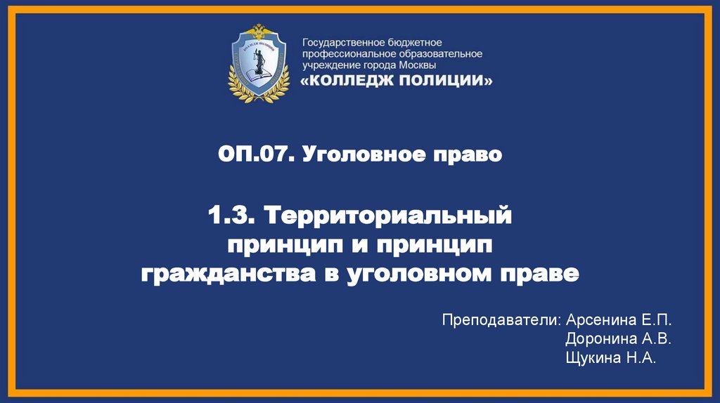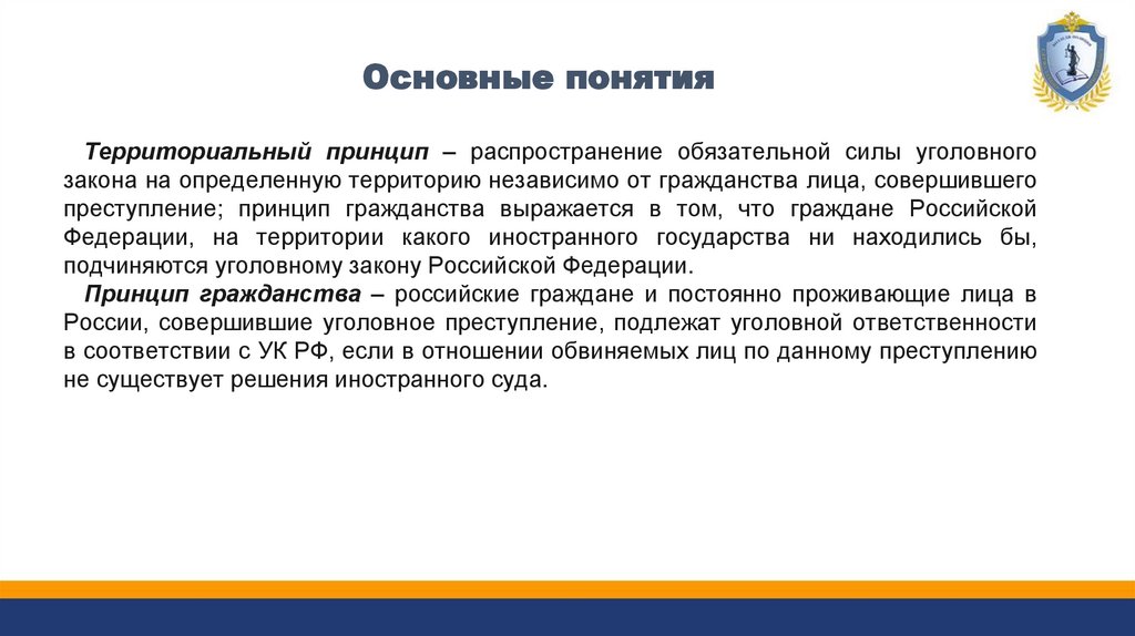 Основные понятияТерриториальный принцип – распространение обязательной силы уголовного